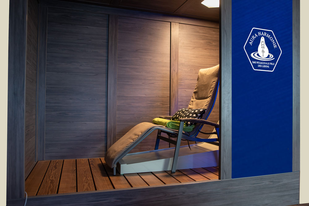 Die Umwelteinflüsse unserer modernen Zeit beeinflussen den menschlichen Körper und können zu einer Überenergie im Organismus führen. In der Aura Harmonie Liege werden durch ein sich im Kreislauf befindliches hexagonales Wasser plusgeladene Quanten neutralisiert und aus dem Körper verdrängt. Die damit verbundene Entschleunigung entlastet den Organismus und gibt ihm Vitalität und Leistungsstärke zurück.